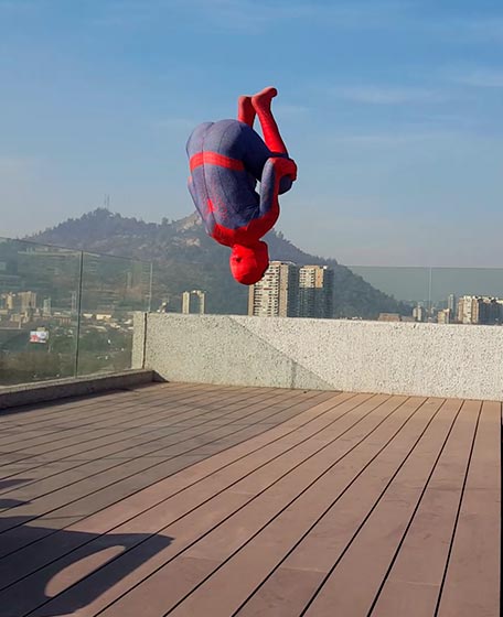 Esta gran presentación, es realizada por un profesional del área, el cual es artista marcial,y gimnasta. Este arácnido llevara sus destrezas y habilidades físicas al limite, para que los niños puedan disfrutar junto a su héroe favorito, y pasen una tarde llena de acción el día de su cumpleaños.